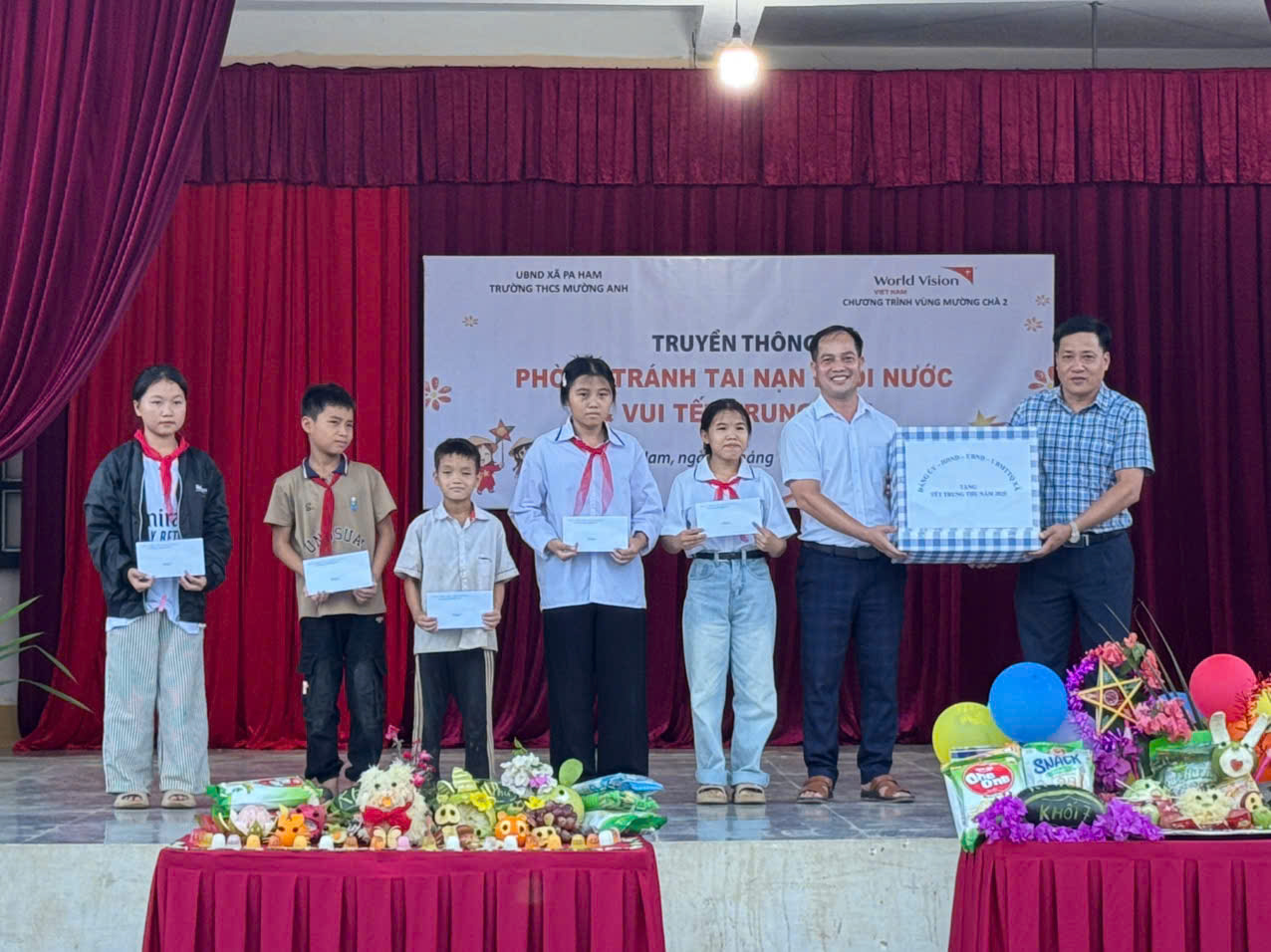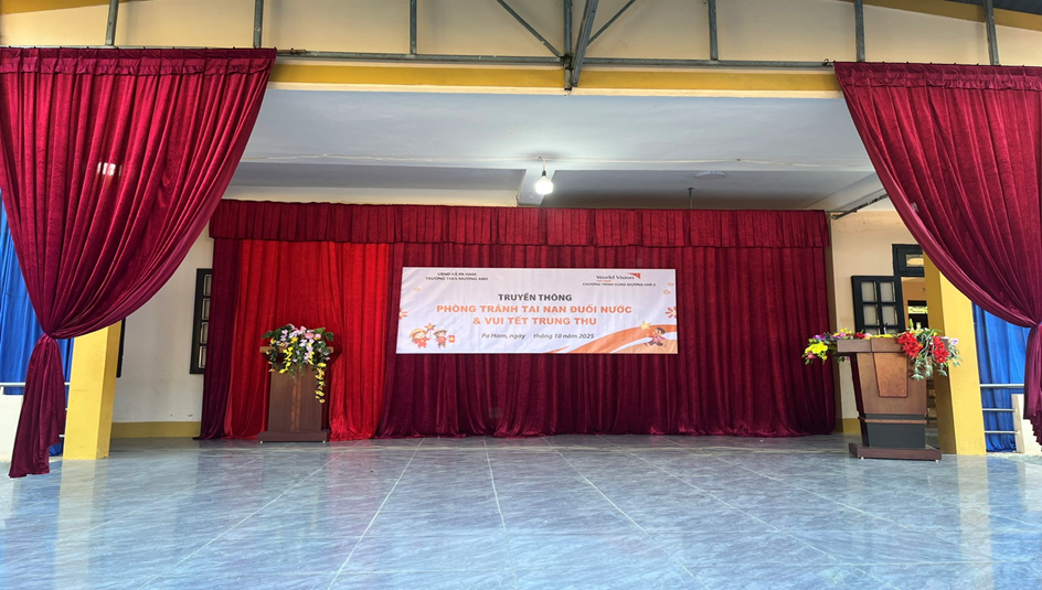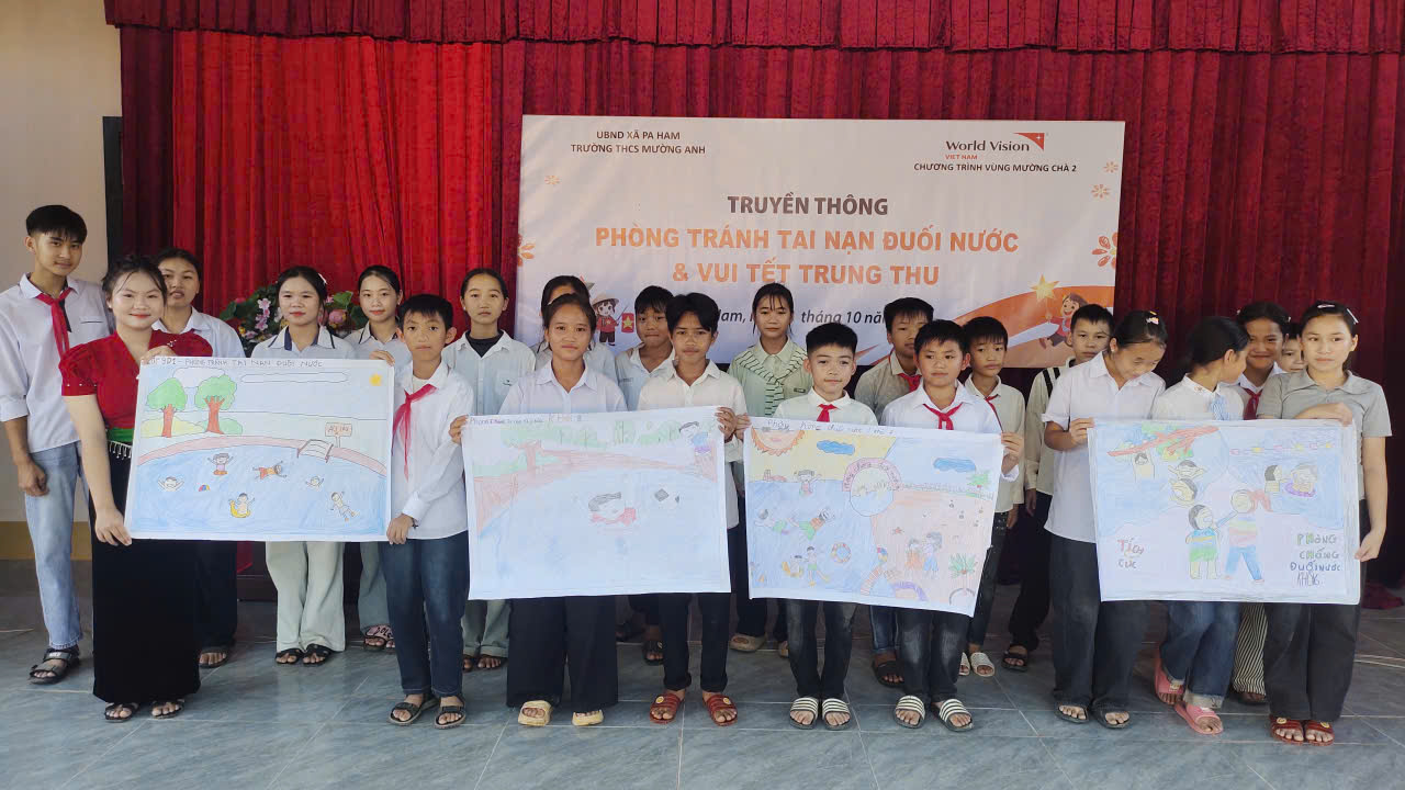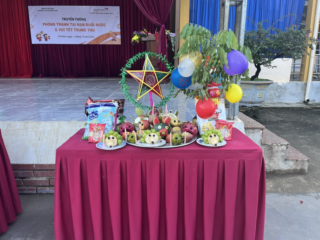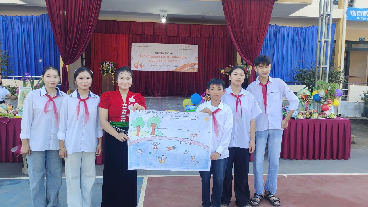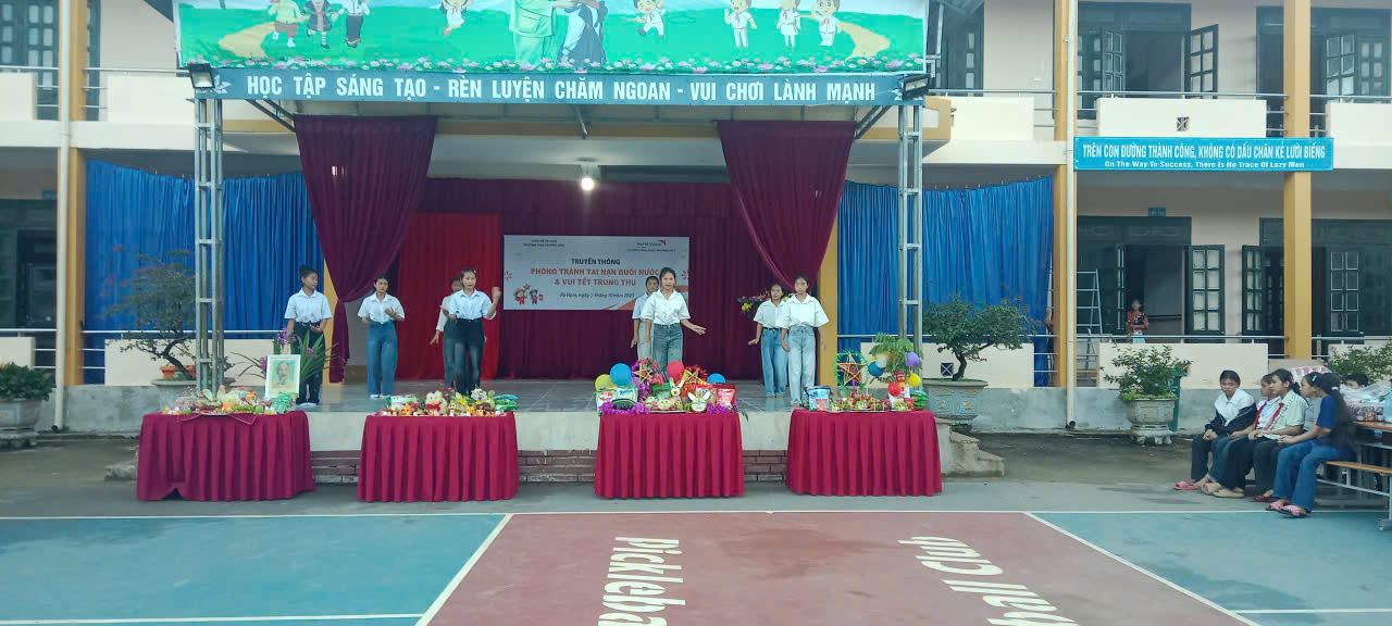 Bên cạnh niềm vui phá cỗ trông trăng, thầy và trò nhà trường còn tổ chức hoạt động truyền thông về phòng tránh tai nạn đuối nước, nhấn mạnh vai trò rèn luyện kỹ năng bơi lội và ý thức an toàn cho học sinh.