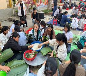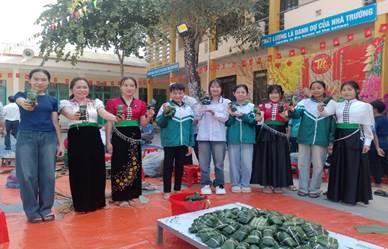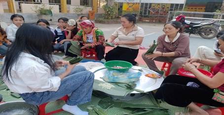Trong không khí rộn ràng khi Tết Nguyên đán đang đến gần, tập thể cán bộ, giáo viên, nhân viên nhà trường đã phối hợp chặt chẽ với các bậc phụ huynh để chuẩn bị chu đáo cho hoạt động. Những chiếc lá dong xanh được rửa sạch, lau khô; khuôn gói bánh cùng các nguyên liệu truyền thống như gạo nếp, đỗ xanh, thịt lợn… đã sẵn sàng, mang đến sự háo hức, phấn khởi cho các em học sinh.